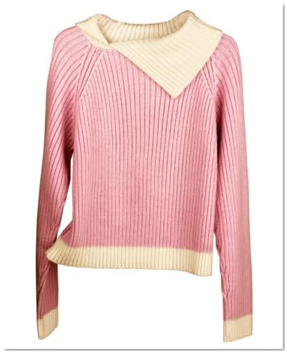 Gentle colors of pink and cream enhance our soft split neck sweater. 100% acrylic. Machine wash. 22"-24 3/8" long. Relaxed Fit. J. Marco exclusive.